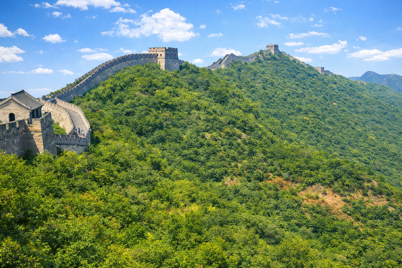 This is particularly true of our visit to what we jokingly refer to as the “Great Pall of China” — a nod to how washed-out and grey the photographs appear — better known, of course, as the Great Wall of China, visited in January 2014. At that time, air pollution around Beijing was significantly worse than it is today, and winter conditions combined with haze produced images that are technically accurate but visually unappealing. Since then, huge efforts have been made to reduce pollution, and the vast majority of visitors go in summer, when skies are clearer, light is stronger, and vegetation is lush and green. AI imagery allows us to show what most visitors are likely to experience now, rather than what a cold, polluted winter morning looked like over a decade ago.